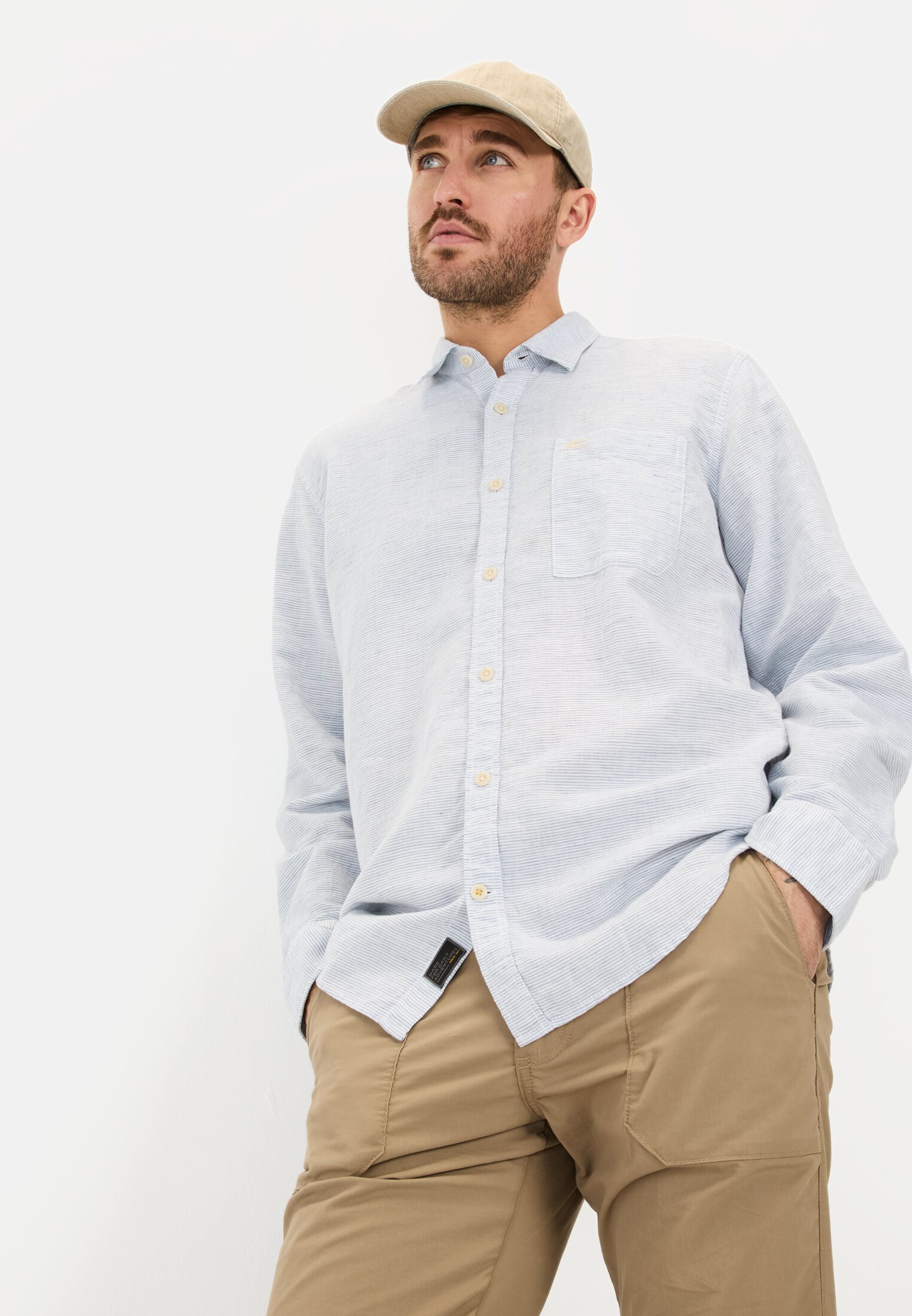 A true lightweight with maximum comfort – this long-sleeve shirt, made from a high-quality linen-cotton blend, keeps us comfortable all day. The fabric feels great on the skin while helping to regulate temperature. The classic Kent collar and chest pocket with a subtle camel active logo add to the relaxed style. With its Regular Fit, the shirt offers a comfortable fit and full freedom of movement. Perfect for laid-back days in the city or summer getaways into nature.