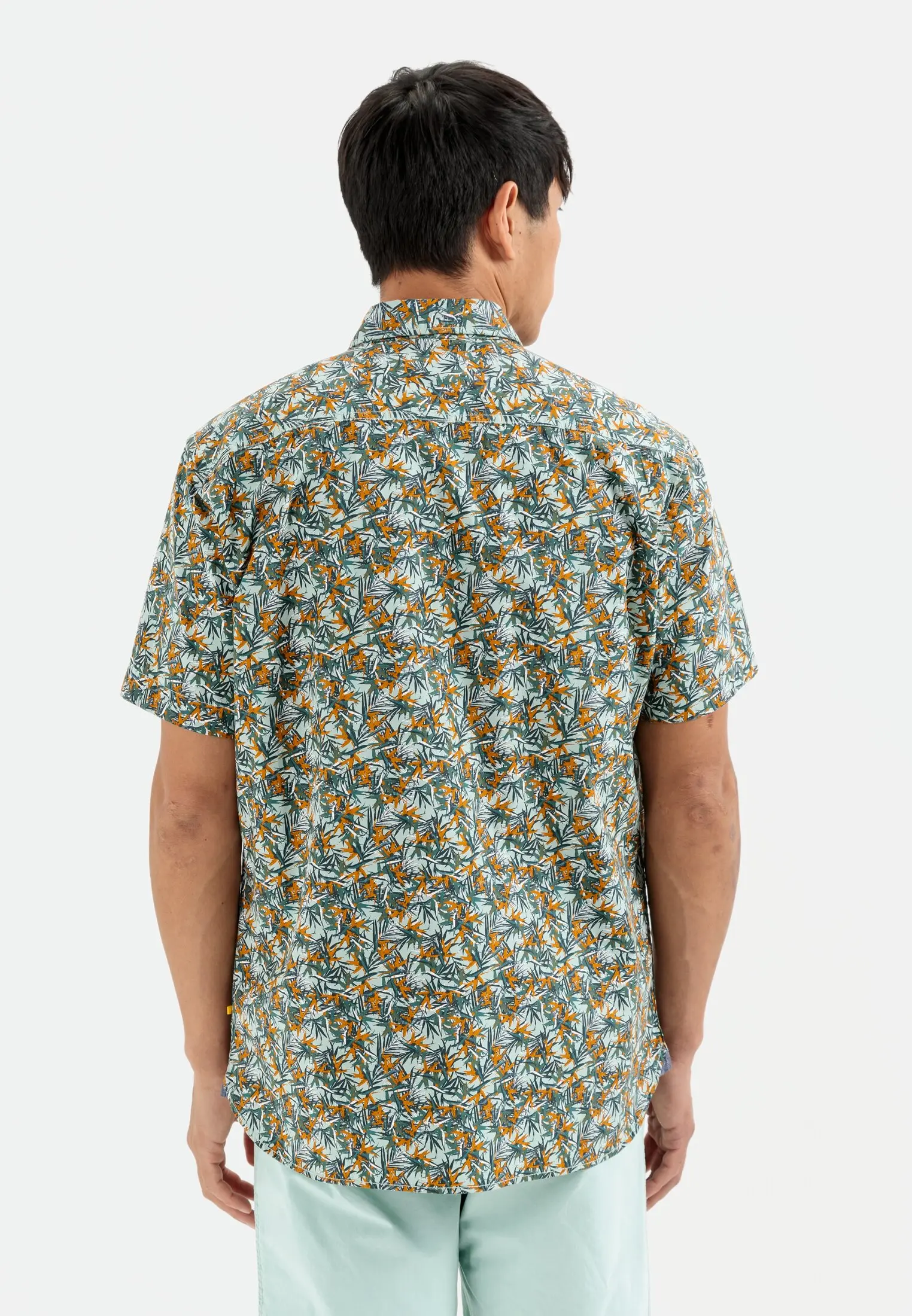 Mit diesem komfortablen Freizeithemd aus Baumwolle bist du modisch und lässig gekleidet. Der natürliche Stoff mit angenehmer Textur ist reißfest, nimmt Feuchtigkeit auf und lässt deine Haut atmen. Am Hals ist das kurzärmlige Hemd im Regular Fit mit einem Button-down-Kragen versehen. Auffällig ist der Allover-Print in floralem Design. Mit camel active Logostickerei auf der linken Brusttasche.