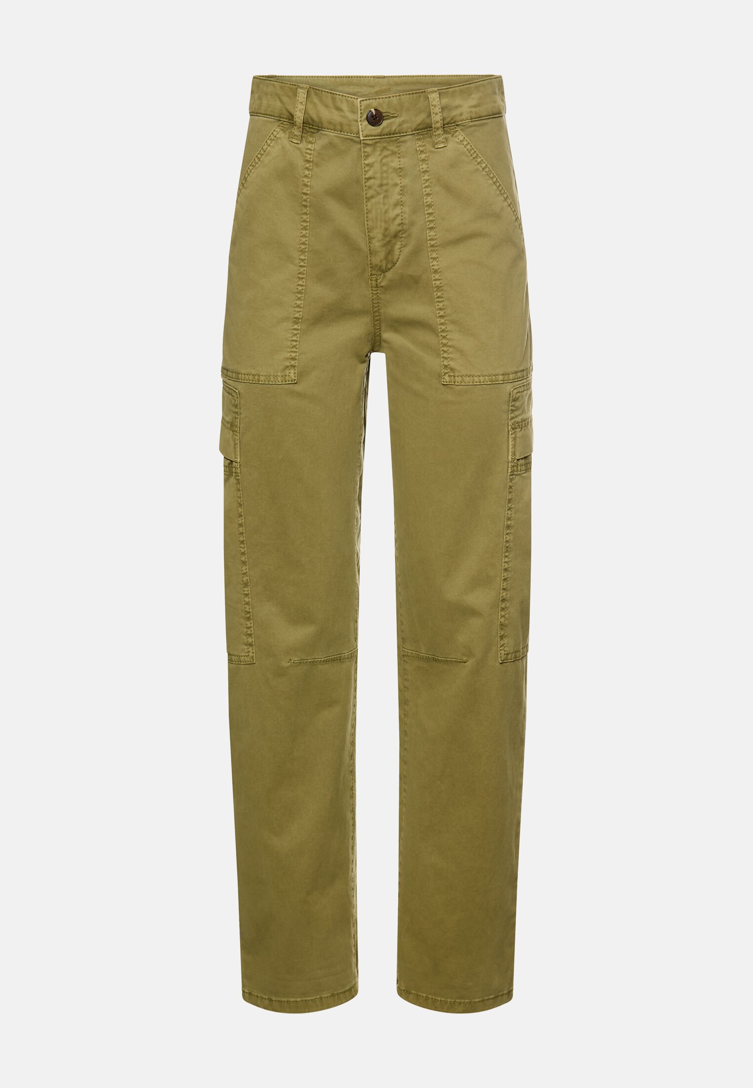 These cargo trousers made from a stretchy cotton blend combine functionality and comfort. The high waistband and relaxed fit ensure a pleasant wearing experience throughout the day. Multiple patched pockets, including large flap cargo pockets, offer plenty of storage. With its slightly peached surface and clear seam details, the trousers have a durable and everyday-ready feel.