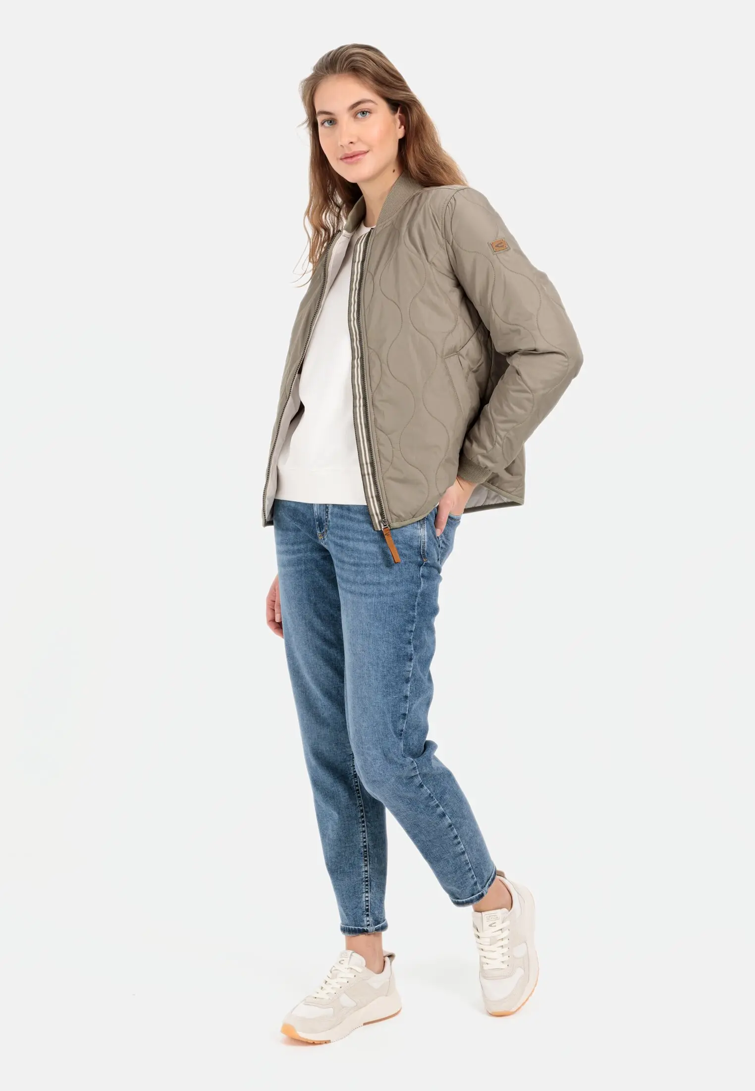 This quilted jacket is made from 100% recycled polyester and is a real wardrobe staple. The short, relaxed fit and the blouson collar make it a cool street style piece. The jacket fastens with a zip with a brand tag. Two side pockets, ribbed cuffs and the wavy quilted pattern complete the on-trend design. With its water-repellent, windproof finish and down-free padding, this quilted jacket is a genuine midseason must-have.