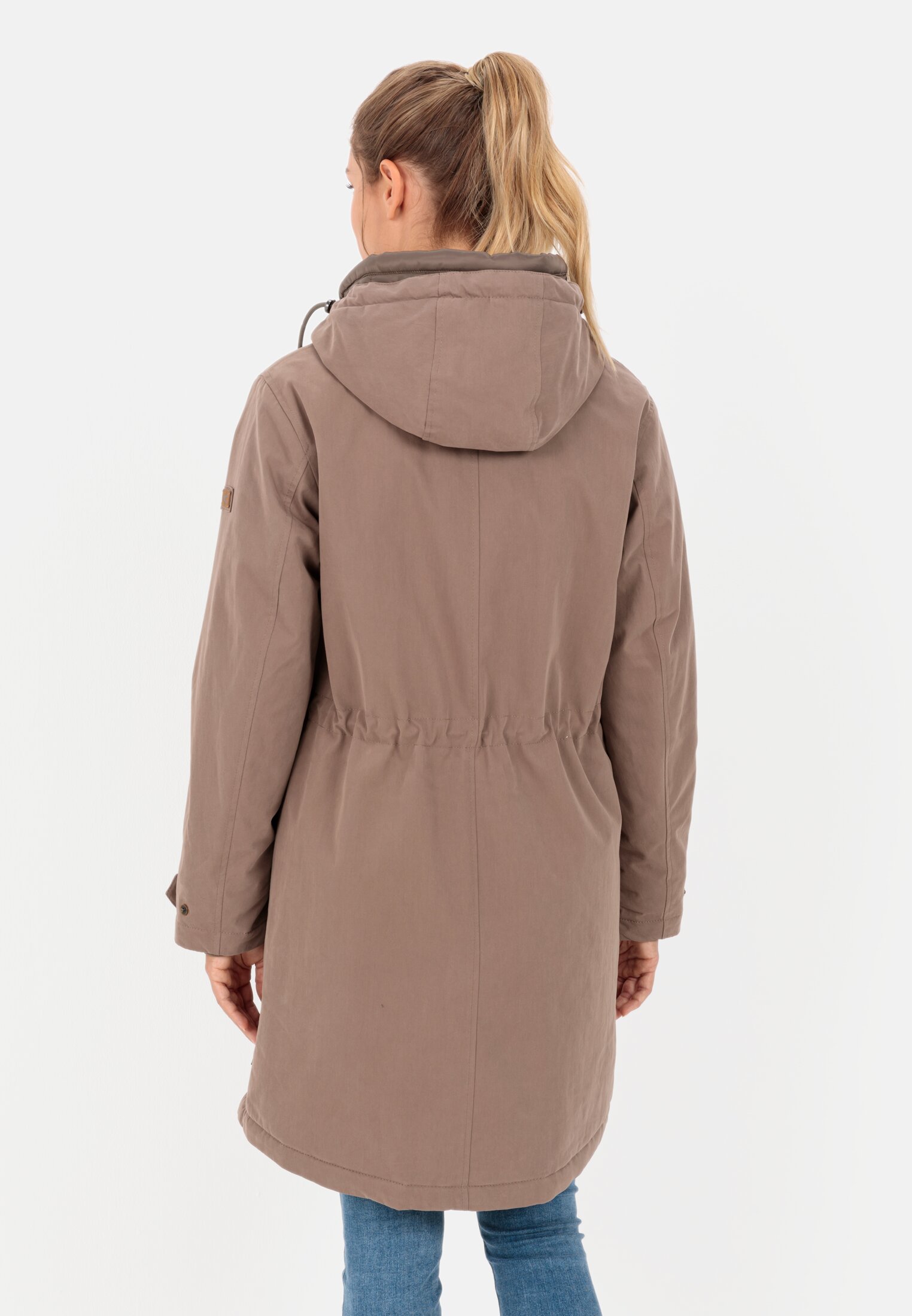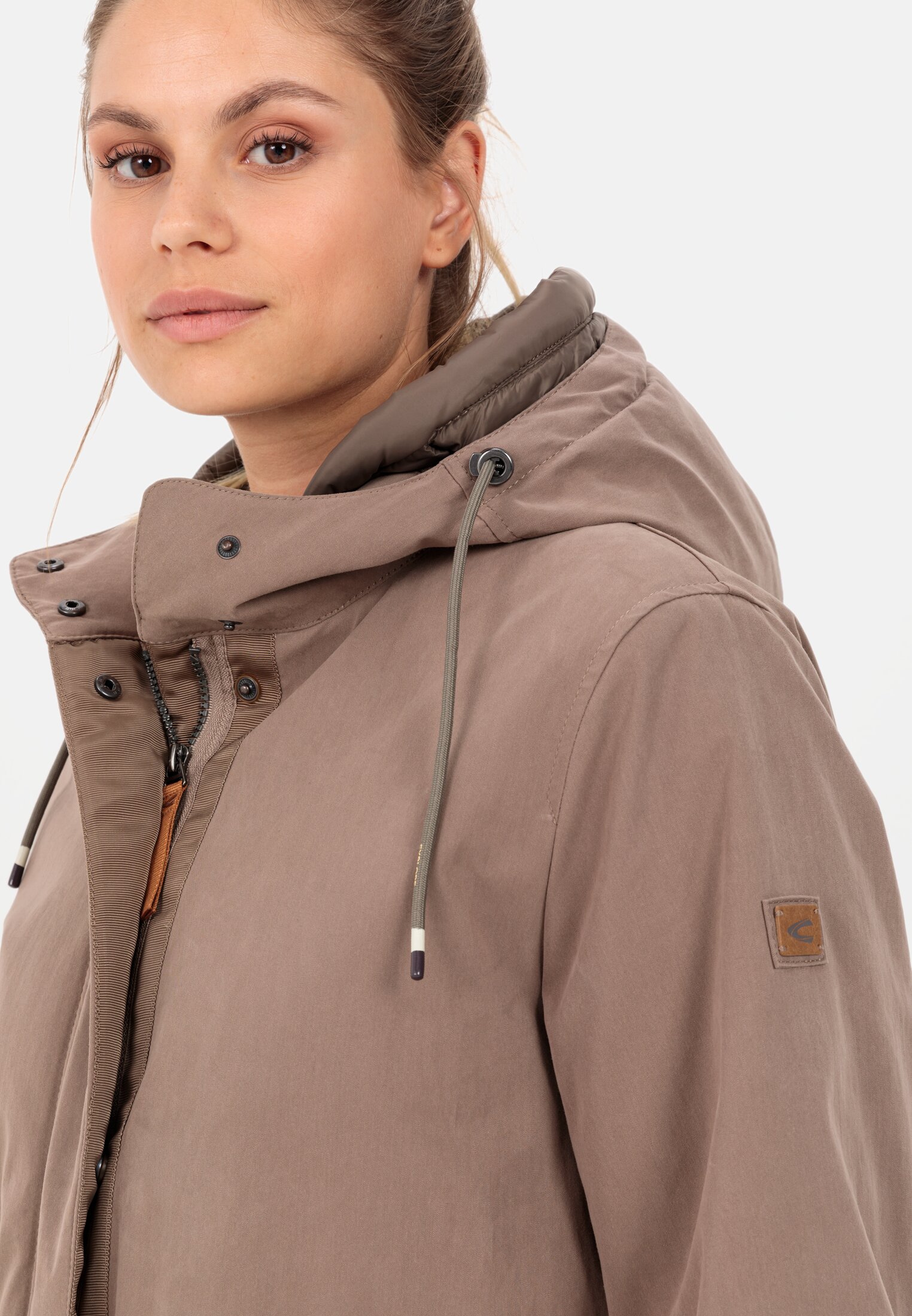 Made from a recycled cotton blend, this down-free functional coat is water-repellent and windproof. The functional features are complemented by a cool design. The coat has a relaxed fit, a brushed finish, a drawstring waist and a hood with removable quilted lining. There is a storm flap with press studs at the top of the 2-way zip. The front pockets are closed with snap flaps. The camel active brand logo is placed on the left sleeve.
