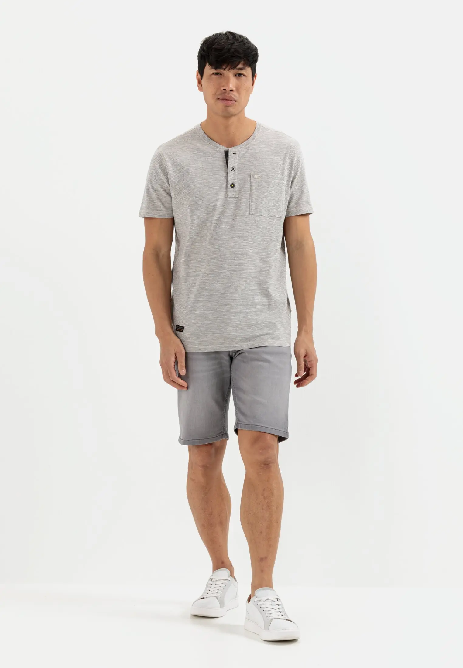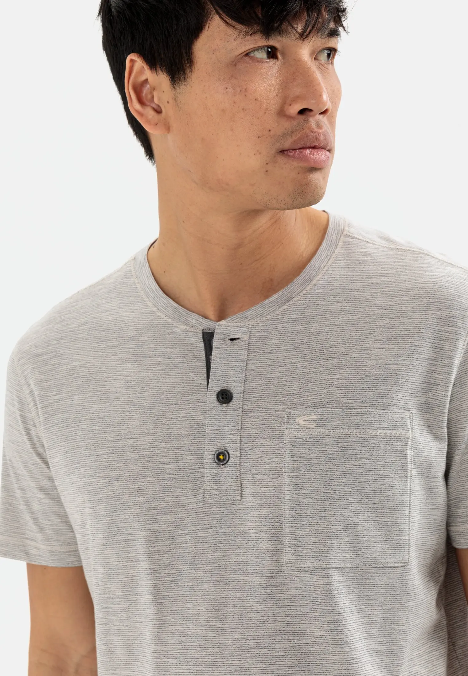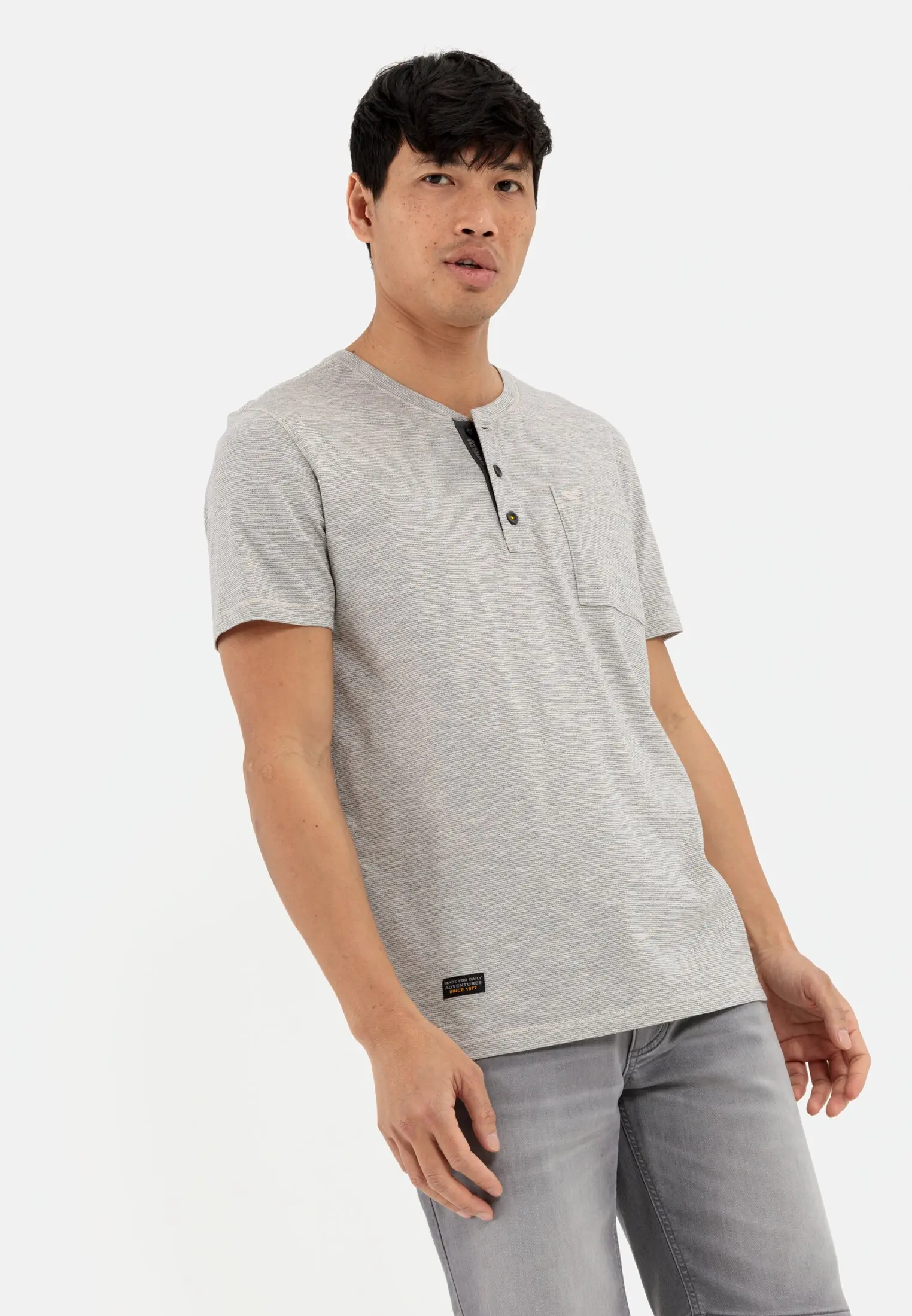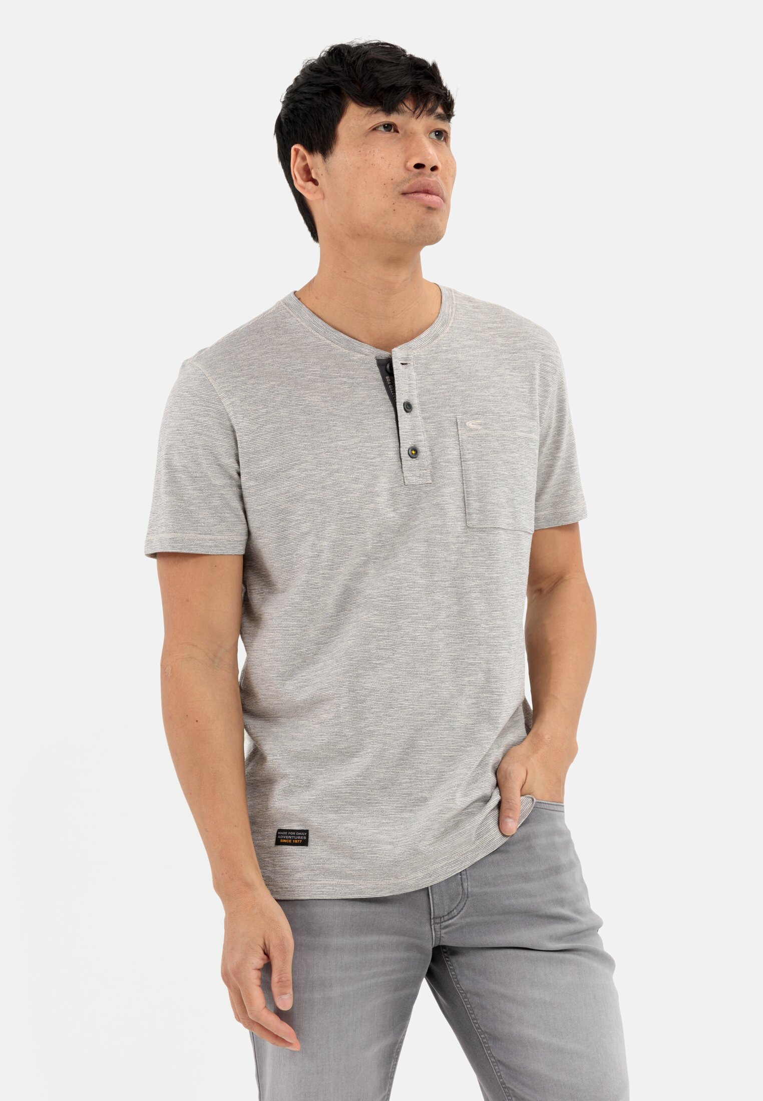Combine this cool regular fit T-shirt with jeans, chinos or shorts to create a comfortably casual look for everyday wear. Made entirely from a breathable and durable cotton, this short-sleeved shirt comes in a mottled look fabric which emphasizes its dynamic style. There is a classic, Henley-style short button placket at the neck and a camel active brand label on the left chest pocket.