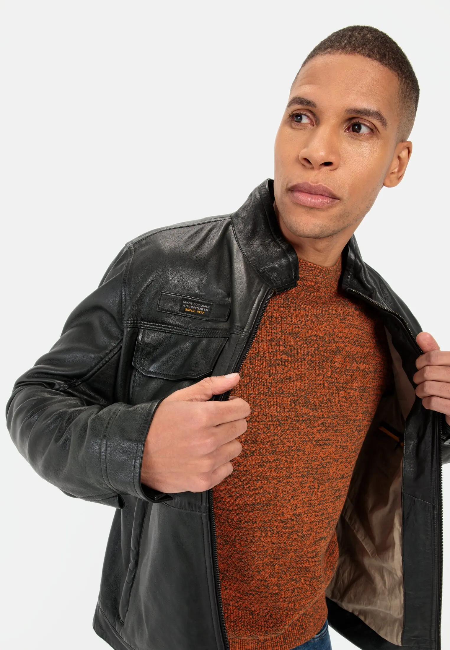 The leather blouson with a stand-up collar complements casual outfits with its cool biker look. The robust leather is lined with cotton, which includes two inner pockets. On the outside, the leather jacket features two chest pockets and two side zip pockets. The sleeve cuffs are adjustable, and the front is closed with a two-way zipper. The regular fit ensures a comfortable wear. A camel active embossing is present on one sleeve.