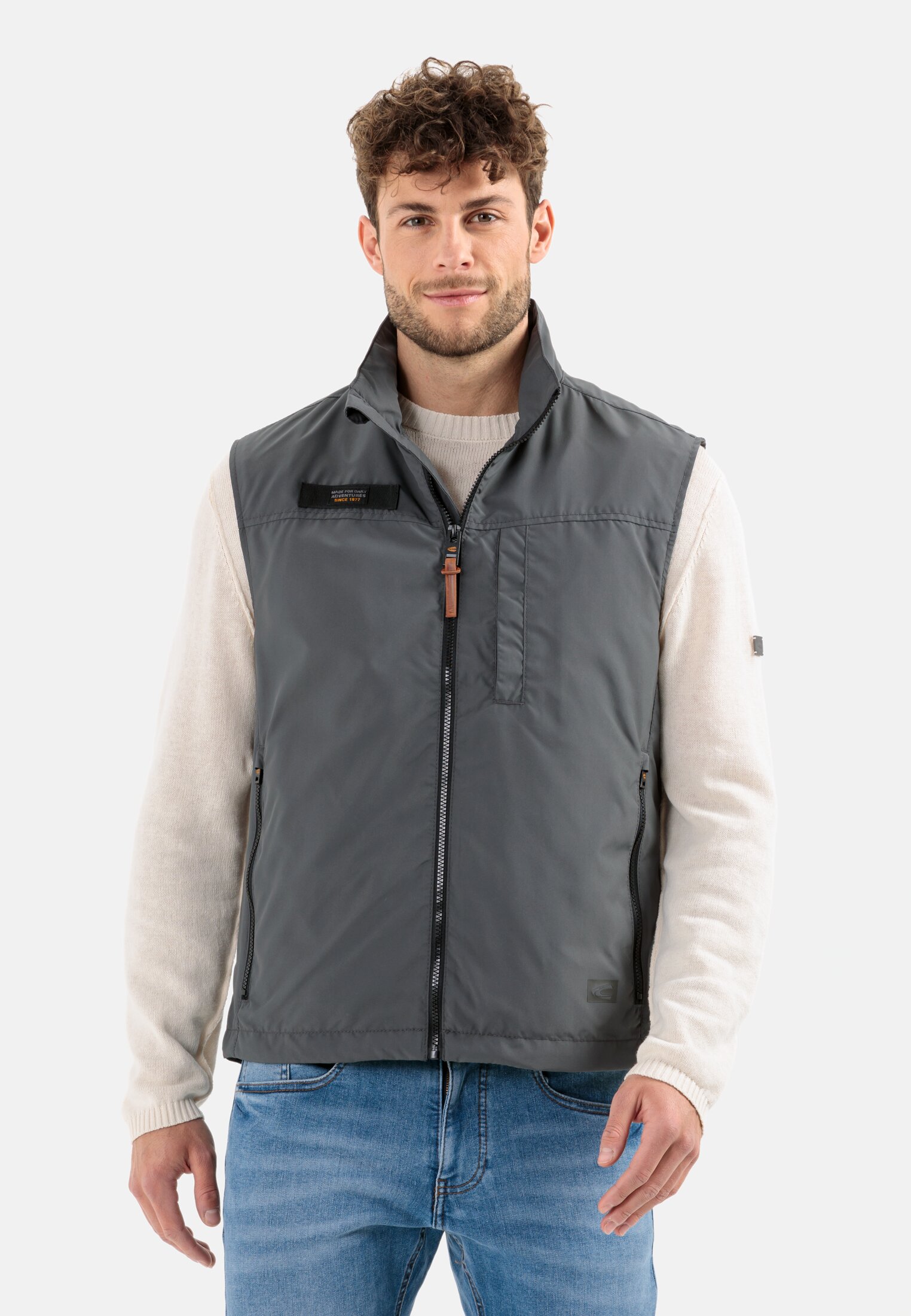 This cool vest in recycled polyester will go with all your sporty leisure outfits. Its durable, easy-care fabric has a pleasantly smooth texture – ideal for the outdoors and everyday wear. The practical details include a side pocket and a zip-fastening chest pocket, plus a mesh insert inside and a roll-up hood. There are camel active logos attached above the left hem and on the right chest.
