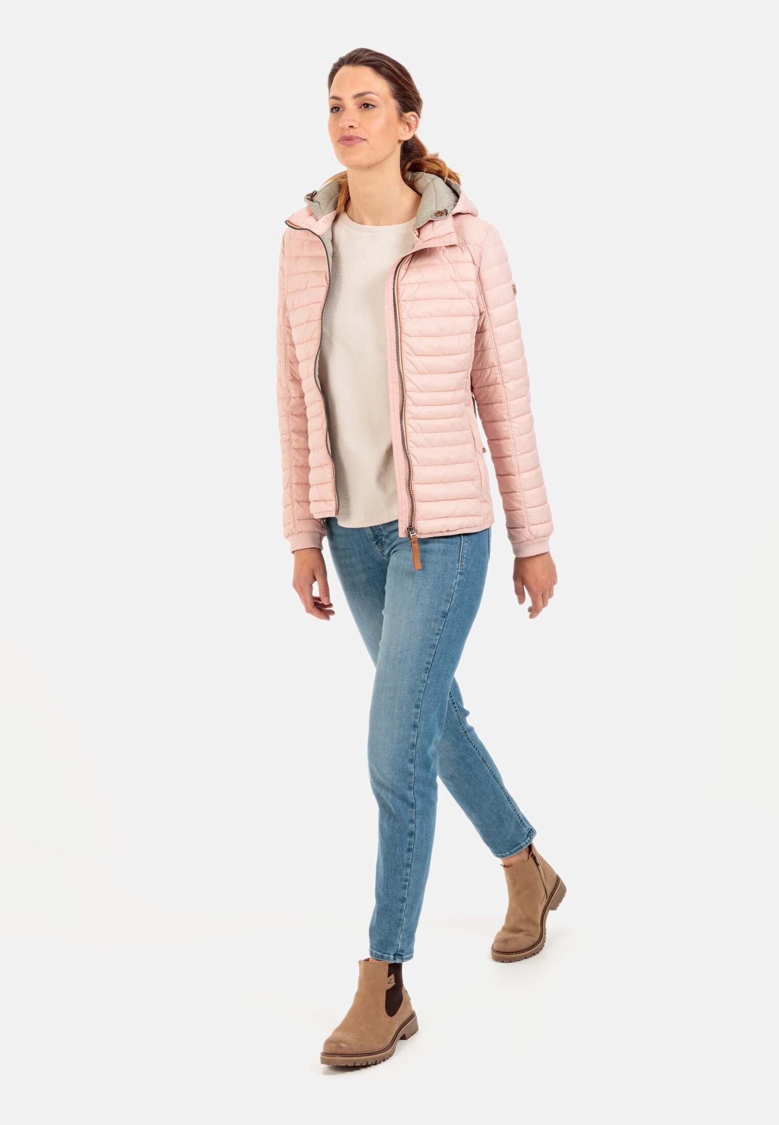 The material of this quilted jacket is a good choice for inclement weather. Both the outer fabric and the inner lining are made from 100% recycled polyamide, which is both windproof and water-resistant. The quilted panels provide additional isulation and contain no down filling. The broad hood can be removed when required, and there is a continuous two-way zipper to fasten the jacket. Elasticated cuffs and a slightly tailored cut ensure a perfect fit.