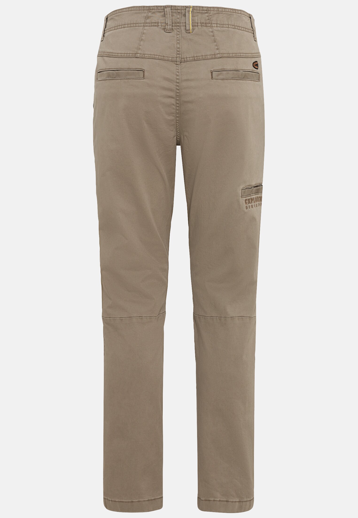 These tapered chinos have a hard wearing, sturdy look thanks to their dividing seams. The cotton blend is durable, easy to care for and the stretch content provides additional elasticity. Besides the back pockets and side pockets, Toronto chinos have a cargo pocket and embroidery on the right trouser leg. Embroidered camel active logo above one back pocket.