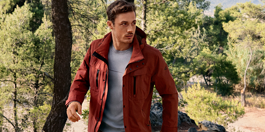 Durable outdoor jacket in waxed cotton canvas. The authentic washed-out look gives the jacket a distinctive character. Comfort features include a high-neck front with adjustable width and a detachable felt hood. A press stud placket over the front zip and windstopper cuffs on the sleeves keep the wind out. The jacket has multiple pockets for easy storage. There is a camel active label on the left sleeve.