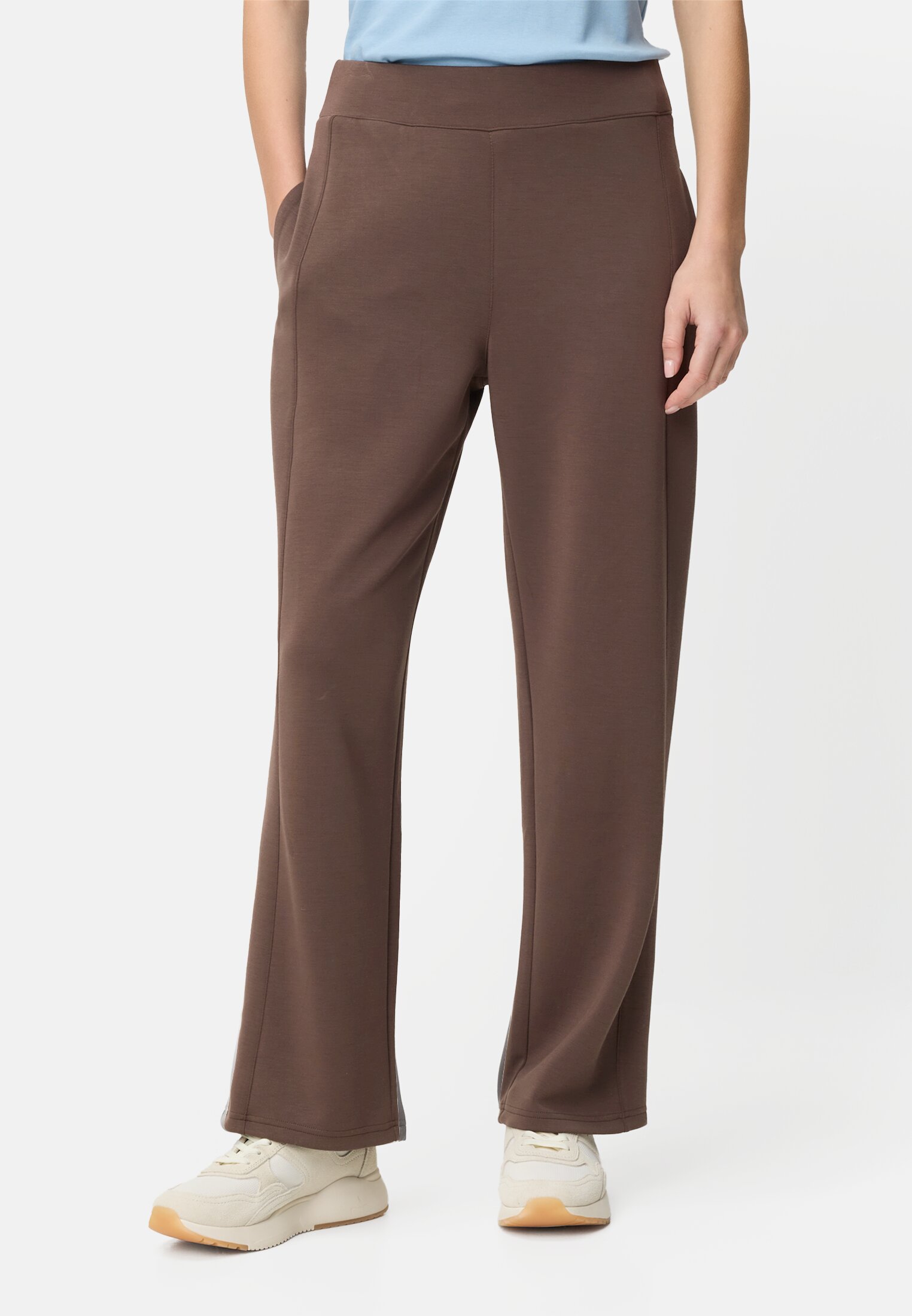 Diese weich fließende Hose aus elastischem Soft Scuba setzt auf Komfort und moderne Lässigkeit. Der weite Beinverlauf, seitliche Eingrifftaschen und der elastische Bund sorgen für eine entspannte Passform – ideal für Freizeit oder entspannte Looks im Alltag.