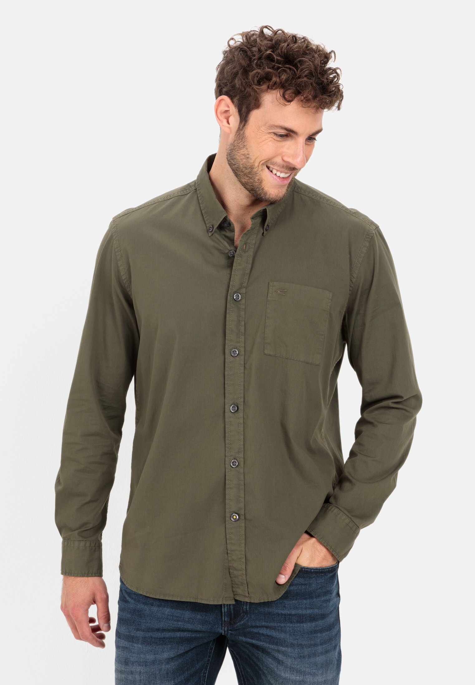 Es erwartet dich ein Langarmhemd aus reiner Baumwolle und mit Bedfordstruktur. Der atmungsaktive sowie saugfähige Baumwollstoff besitzt authentische Wascheffekte durch eine Garment Dyed-Färbung. Daher vor dem Waschen bitte unbedingt die Pflegeanleitung beachten. Das langärmelige Regular Fit Manschettenhemd mit Button-down-Kragen ist mit einem camel active Logo auf der Brusttasche bestickt.