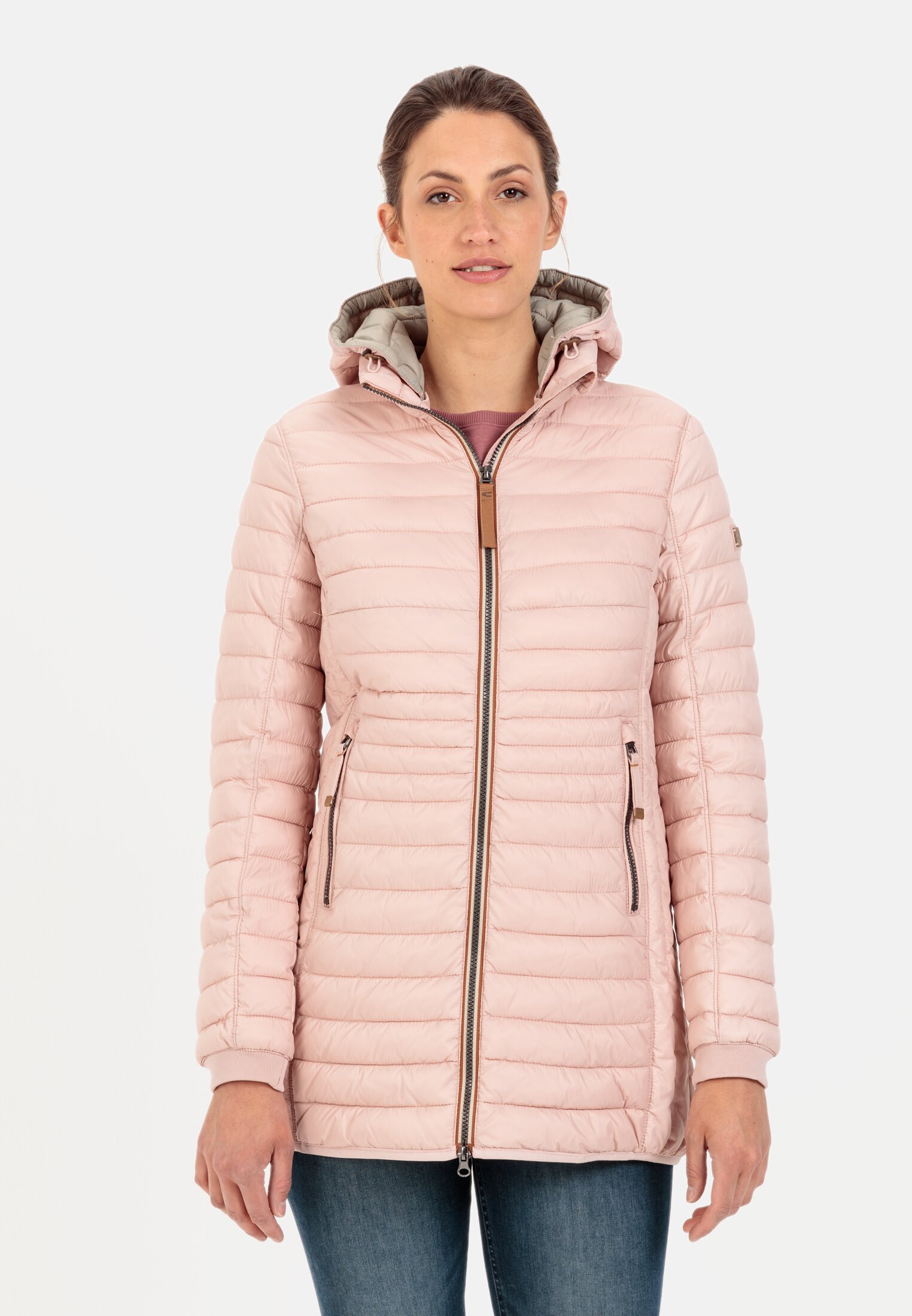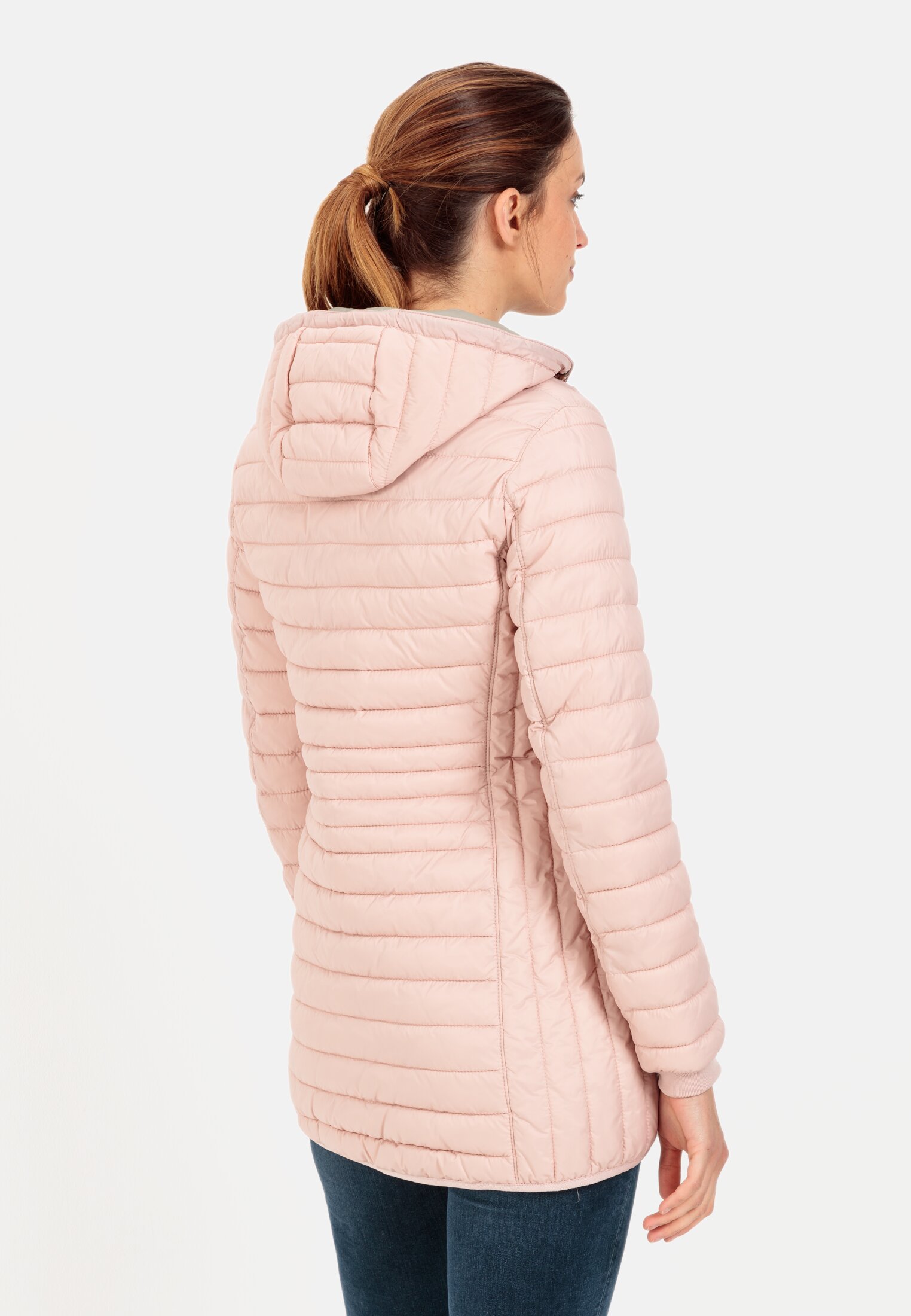 Lange Steppjacke mit abnehmbarer Kapuze