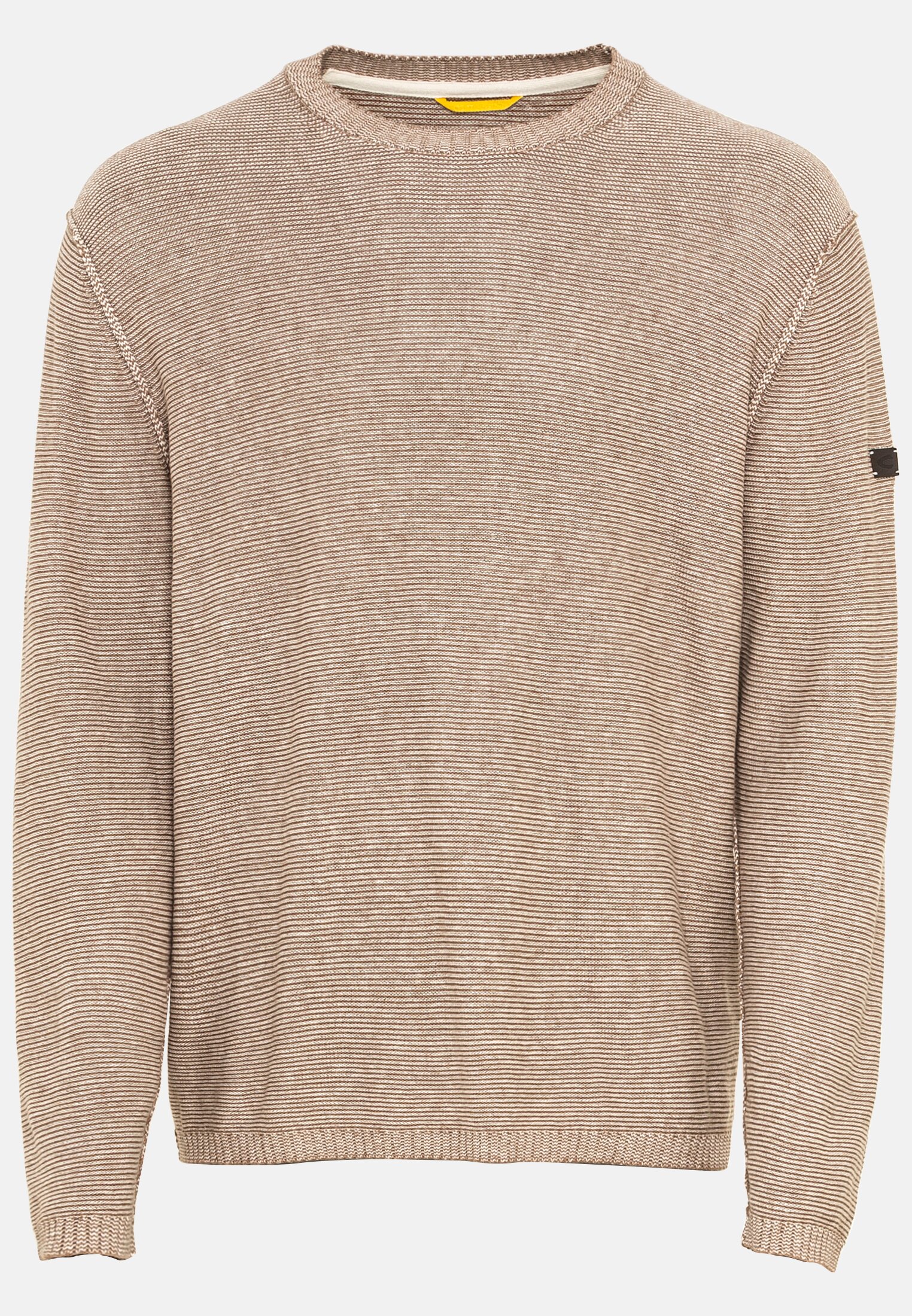 Dieser moderne Pullover für jeden Tag besteht aus einer sommerlichen Leinenmischung. Für ein angenehmes Tragegefühl wurde ein Anteil atmungsaktiver, hautfreundlicher Baumwolle in den robusten Stoff eingearbeitet. Der Pulli ist im lässigen Regular Fit mit gerade auslaufendem Saum geschnitten. Durch die feine Strickqualität kommt das dezente Streifenmuster gut zur Geltung. Mit camel active Markenlabel auf dem linken Arm.