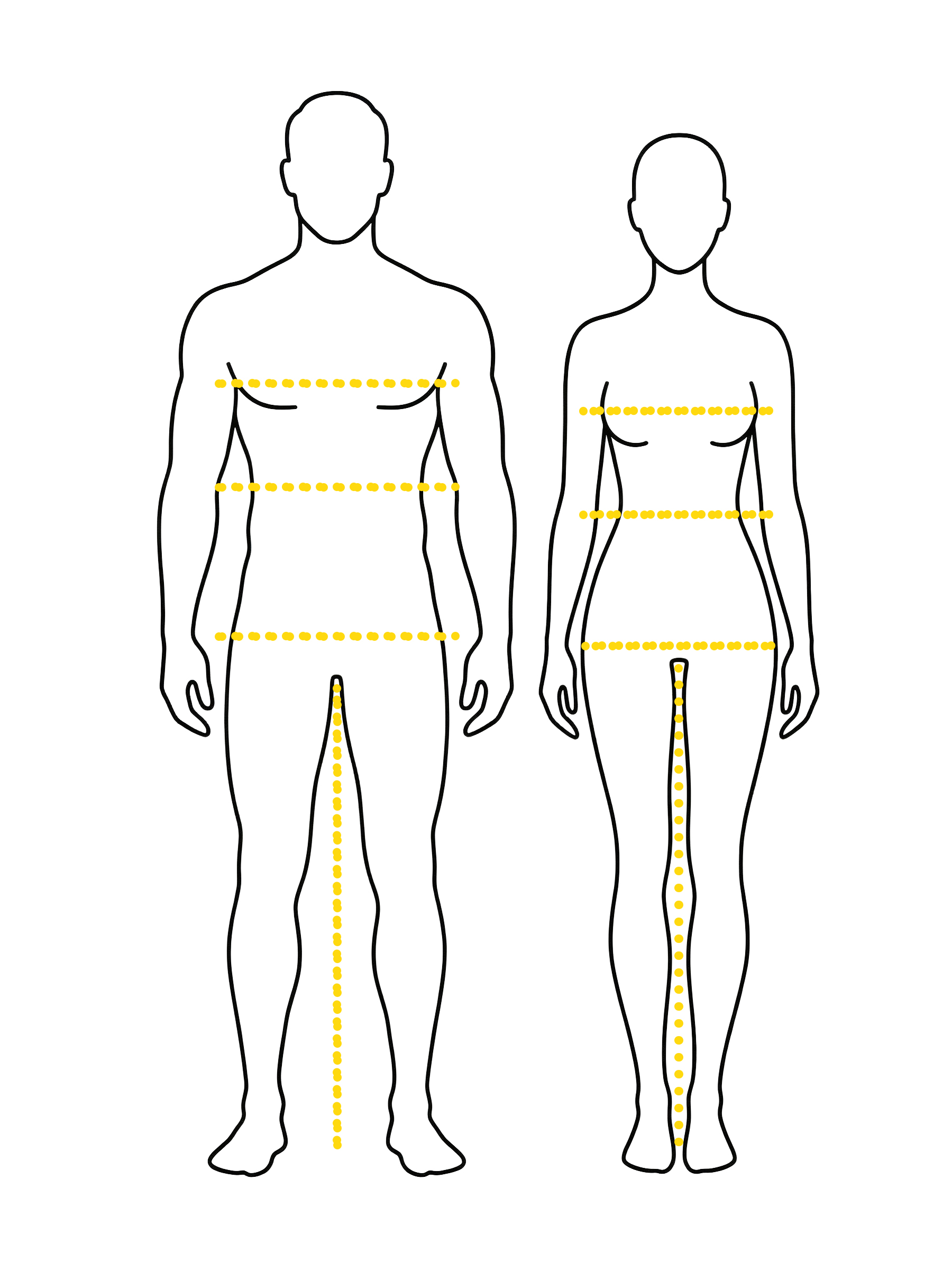 Neem een meetlint en meet de volgende lichaamsdelen om je maat gemakkelijk thuis te bepalen. Het is belangrijk dat je dicht op het lichaam meet en het meetlint recht houdt.