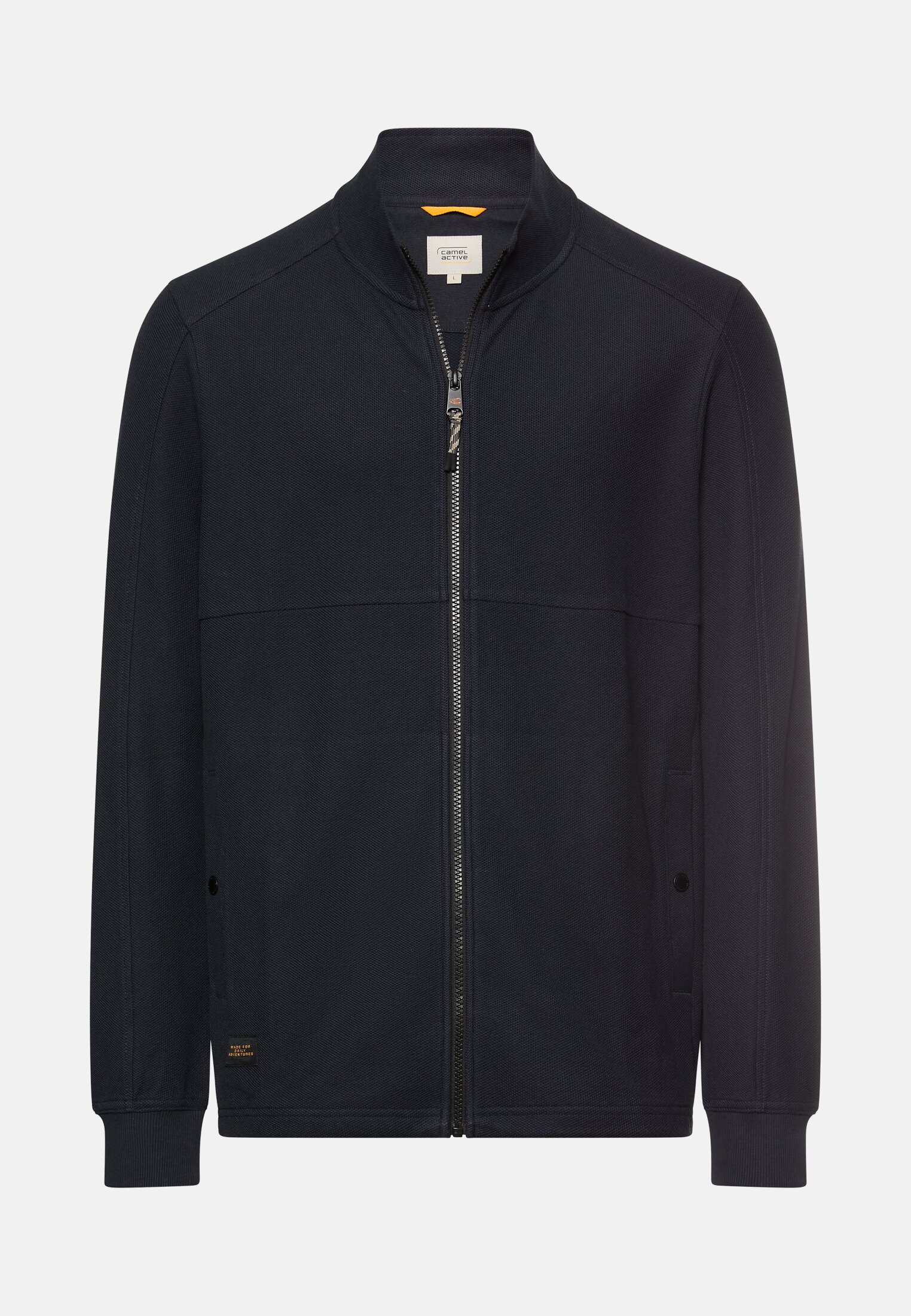 De sweatjack overtuigt met functionele details en doordachte verwerking. Gemaakt van puur katoen, biedt hij comfort en robuustheid in het dagelijks leven. Het verstelbare trekkoord maakt een individuele aanpassing mogelijk, terwijl de geribde mouwboorden voor een optimale pasvorm zorgen. Praktische zijzakken met drukknoopsluiting bieden veilige opbergruimte. De duidelijke snit en het gestructureerde oppervlak geven het jack een moderne uitstraling. Deze sweatjack is ideaal voor ontspannen vrijetijdsactiviteiten en is een veelzijdige metgezel. Het combineert functionaliteit met aangenaam draagcomfort.