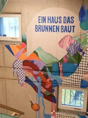 Goldeimer kwam als volgende toevoeging. Zij maken composttoiletten op festivals. Dus de sociale/ecologische alternatief voor Dixi-toiletten. Toen kwam de Millerntor Gallery, een straatkunst-, kunst- en cultuurfestival in het stadion van FC St. Pauli, dat inmiddels zo'n 18.000 tot 20.000 bezoekers per jaar trekt. En dan nog veel meer verhalen en ideeën, tot we nu hier zijn aangekomen in de Villa Viva in Hamburg, een hotel met een sociaal doel, dat ook winst maakt, die deels weer naar WASH-projecten gaat. Belangrijk om daarbij altijd te vermelden is dat Viva con Agua voor zijn sociale zakelijke ideeën nooit donatiegeld gebruikt. Dat is bestemd voor het projectwerk van de vereniging en bij zakelijke ideeën helpen sociale investeerders ons zoals Jan Delay of Bela B, bijvoorbeeld bij de Villa Viva hier."
