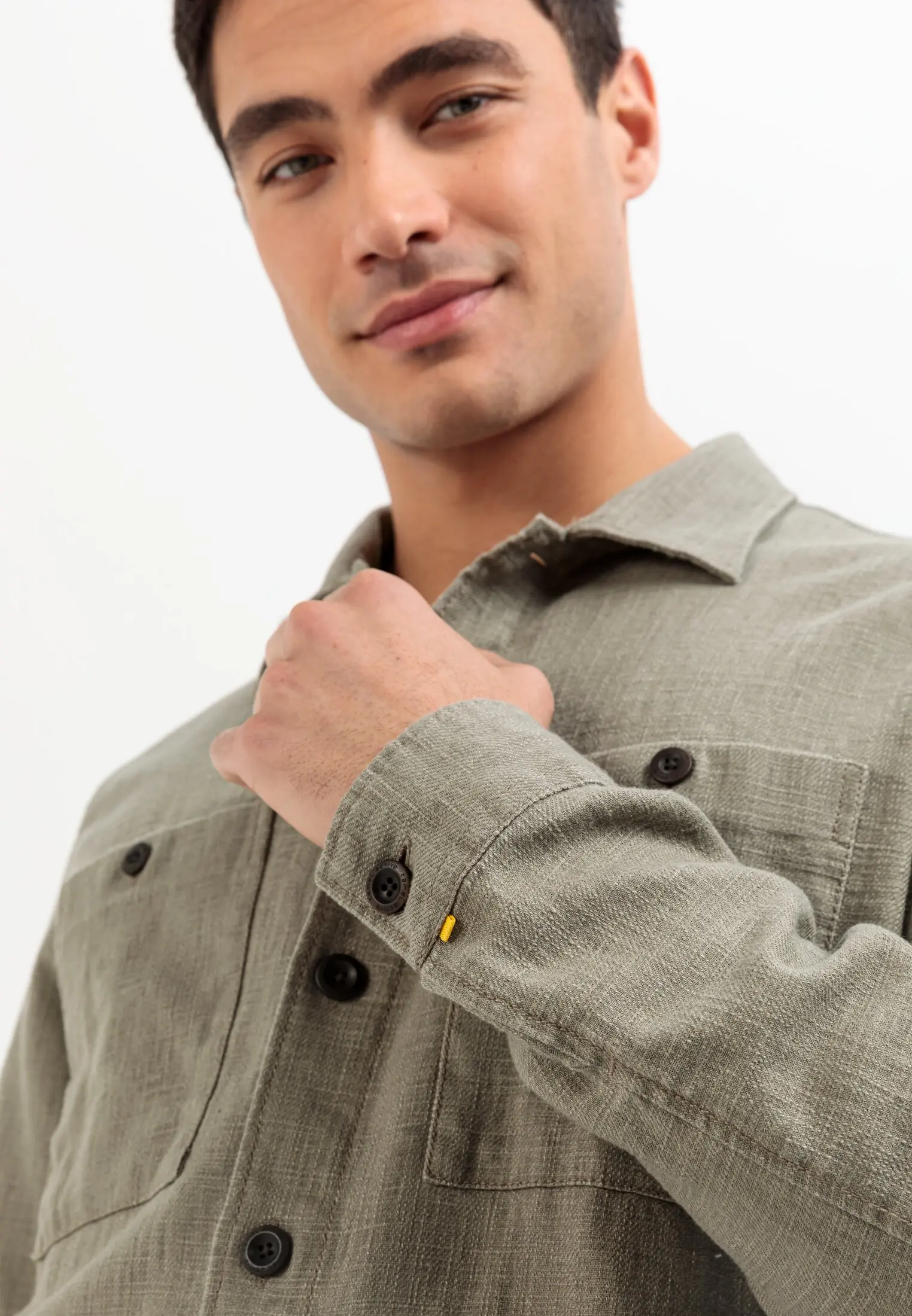 In diesem kernigen Overshirt im lockeren Relaxed Fit treffen zwei natürliche Textilfasern aufeinander. Atmungsaktive Baumwolle sorgt für ein angenehmes Tragegefühl, robustes Leinen für eine reißfeste Struktur. Der Halsausschnitt ist mit einem zeitlosen Kentkragen versehen. Zwei aufgesetzte Brusttaschen mit Knopfverschluss heben den lässigen Style des langärmligen Overshirts hervor. Mit camel active Logostickerei auf der linken Brust und Label am rechten Saum.