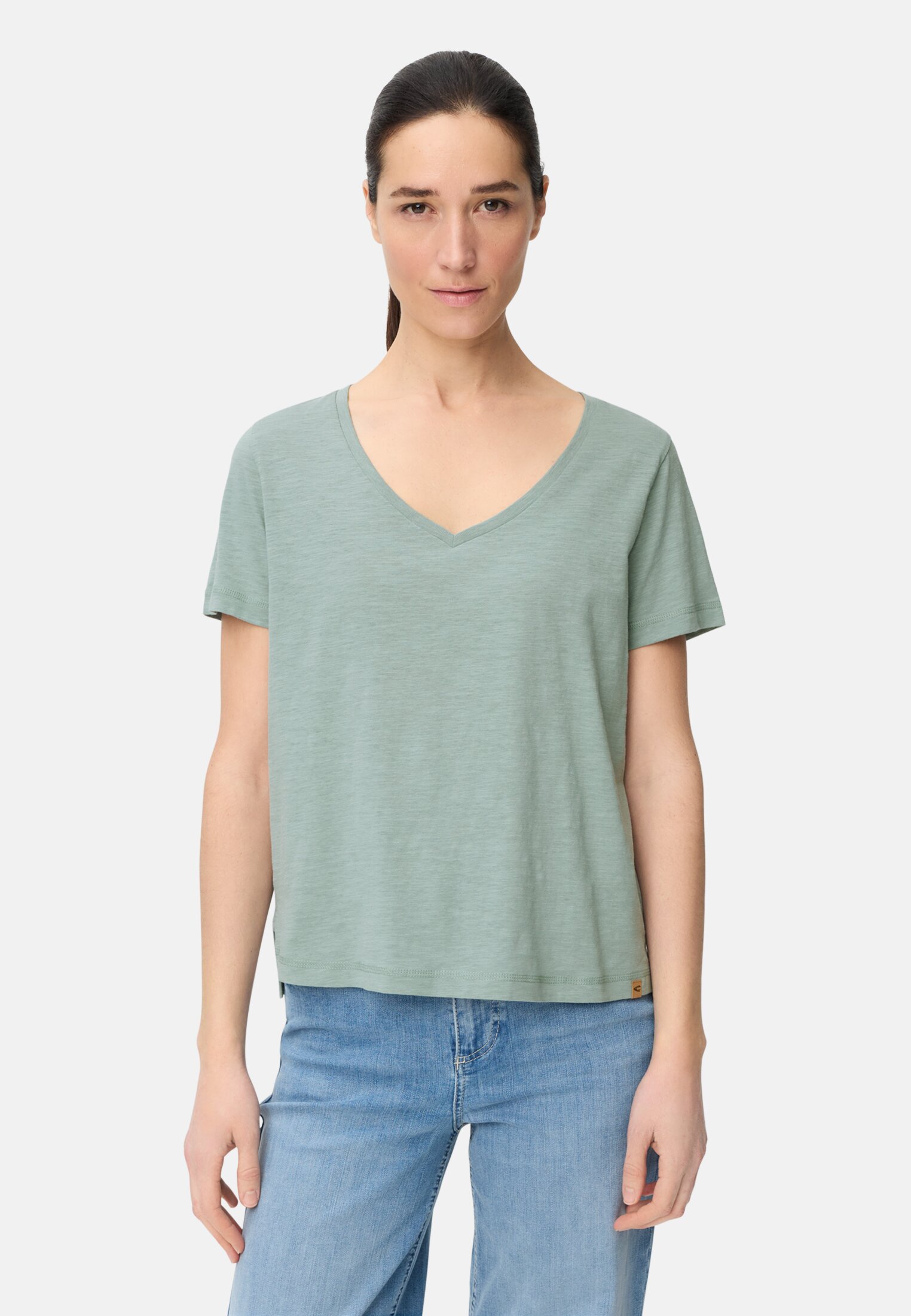 Mit einem V-Ausschnitt ausgestattet, bietet das Kurzarmshirt eine klare und funktionale Linie. Die seitlichen Schlitze sorgen für Bewegungsfreiheit und erhöhen den Tragekomfort. Der Regular Fit garantiert eine lässige Passform, die sich vielseitig kombinieren lässt. Das Shirt ist aus reiner Bio-Baumwolle gefertigt und steht für einen angenehmen Tragekomfort. Pflegeleicht und strapazierfähig, ist es eine praktische Wahl für den Alltag.