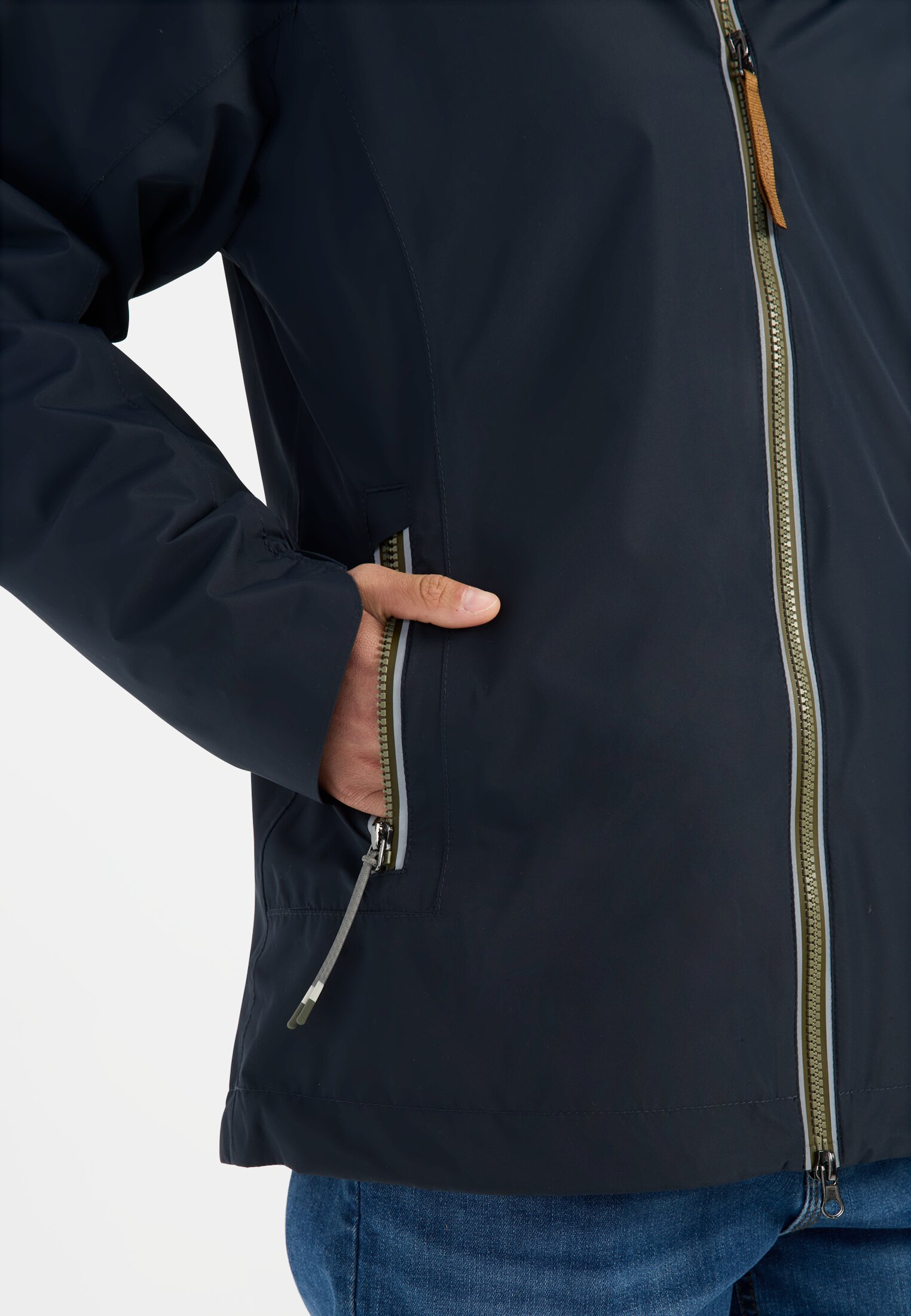 - Feste Kapuze und verstellbarer Saum
